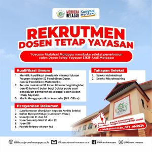 Yayasan Matahari Matappa membuka seleksi penerimaan calon DTY STKIP Andi Matappa untuk prodi PGSD dan Pendidikan Matematika…