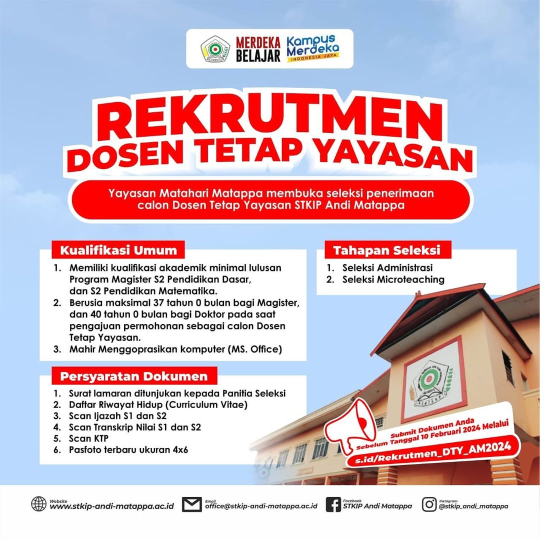 Yayasan Matahari Matappa membuka seleksi penerimaan calon DTY STKIP Andi Matappa untuk prodi PGSD